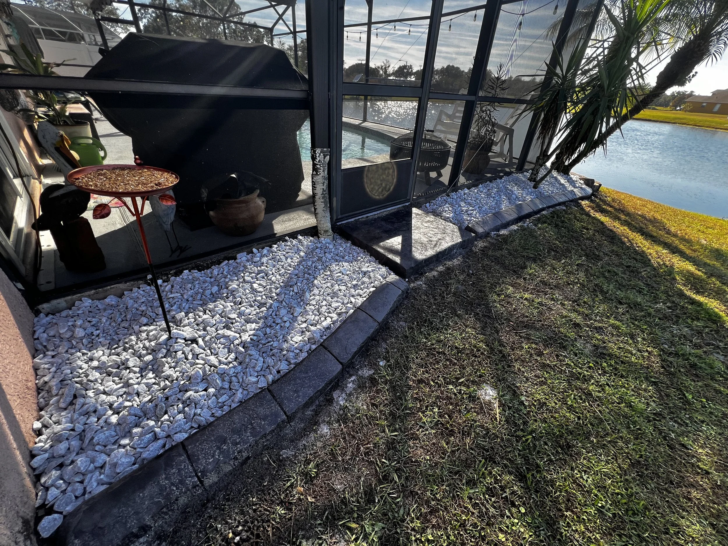 “Very professional and beautiful work. Completely satisfied with color, shape and size of curbing around pool cage. The white rocks complement the curb and the finished project is perfect. Gabe and his crew arrived on time, cleaned as they worked, and left place immaculate. ”